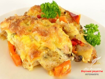 Для приготовления курицы под сыром в духовке понадобится: