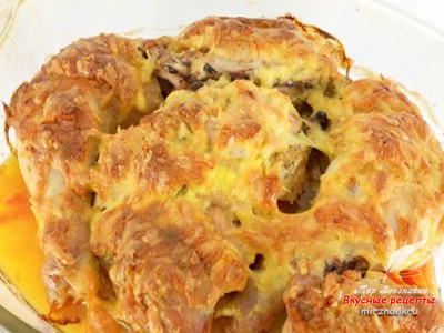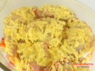 Покрыть курицу сверху сырной смесью.