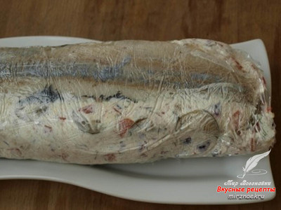 Заворачиваем в плёнку, как рулет, и убираем в морозильник на несколько часов до полного застывания.